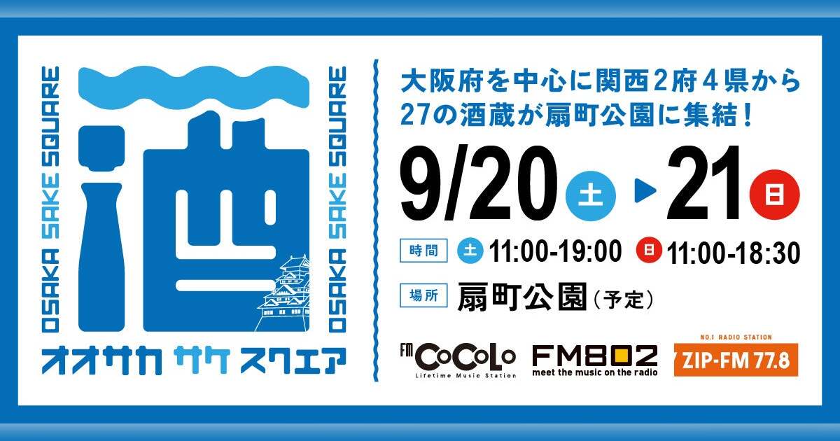 大阪府酒造組合とFM COCOLO / FM802 / ZIP-FMが、大阪をはじめ関西の酒造業界の活性化をめざし2023年よりスタートさせた日本酒試飲イベント「OSAKA-JO SAKE SQUARE」。