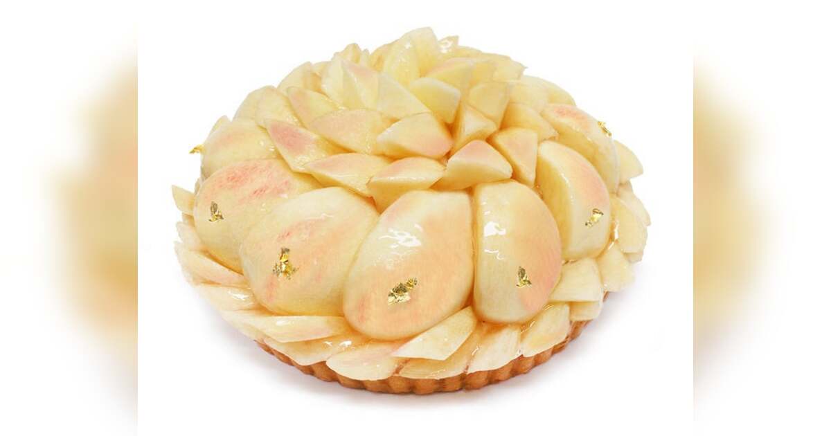 果汁たっぷりの桃と独特な食感のいちじくをあわせて、美しく飾り付けました。コクのあるカスタードクリームのベースと共に楽しめます。〈ベース:カスタードクリーム 価格:1,300円(税込)/1ピース〉