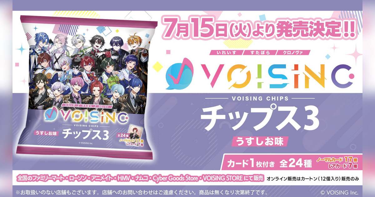 『VOISINGチップス3 うすしお味』は、株式会社バンダイナムコアミューズメントが運営する全国のアミューズメント施設「ナムコ」と「ナムコオンラインクレーン」にて2025年7月15日(火)より順次登場いたします。