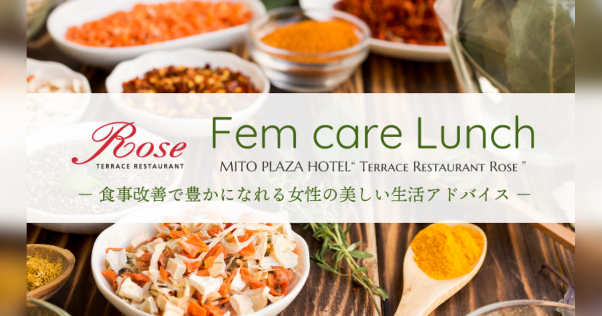水戸プラザホテル(所在地:茨城県水戸市千波町2078-1)は、2025年7月24日(木)に「テラスレストラン・ローズ」にて、現代女性の心と身体のケアをテーマとしたランチイベント「Fem care Lunch(フェムケアランチ)」を開催いたします。