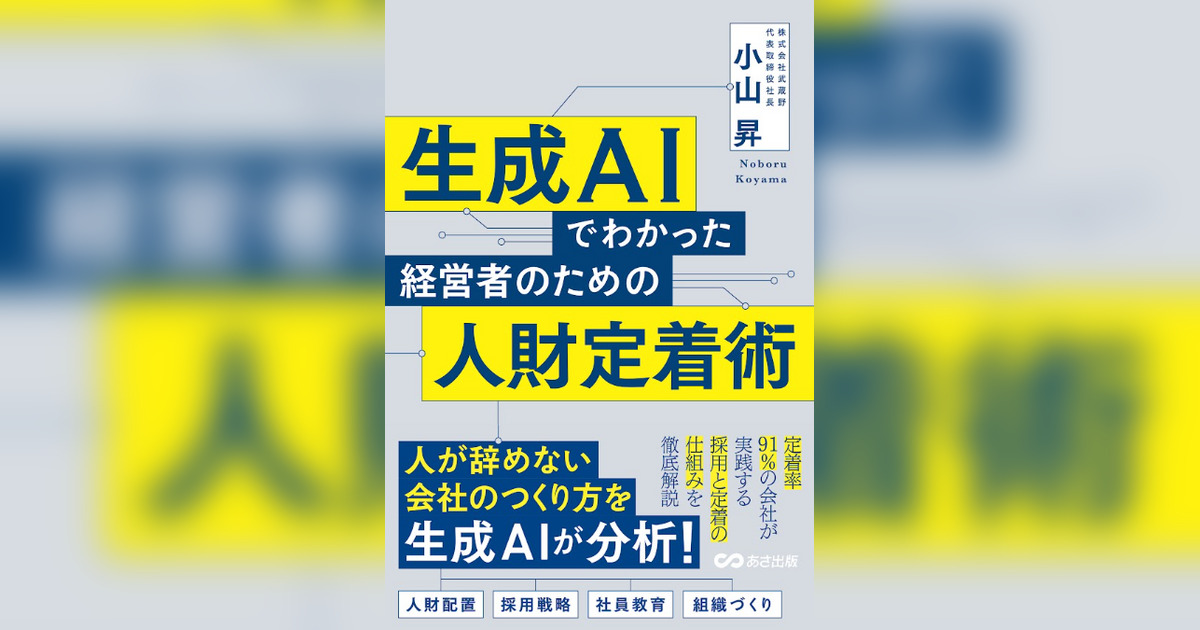 全国の経営者を対象に経営コンサルティングを行なっている株式会社武蔵野(所在地:東京都小金井市)代表取締役社長 小山昇の最新著書が2025年7月7日に発売されました。小山自身の87冊目となる著書のタイトルは『生成AIでわかった経営者のための人財定着術』です。
