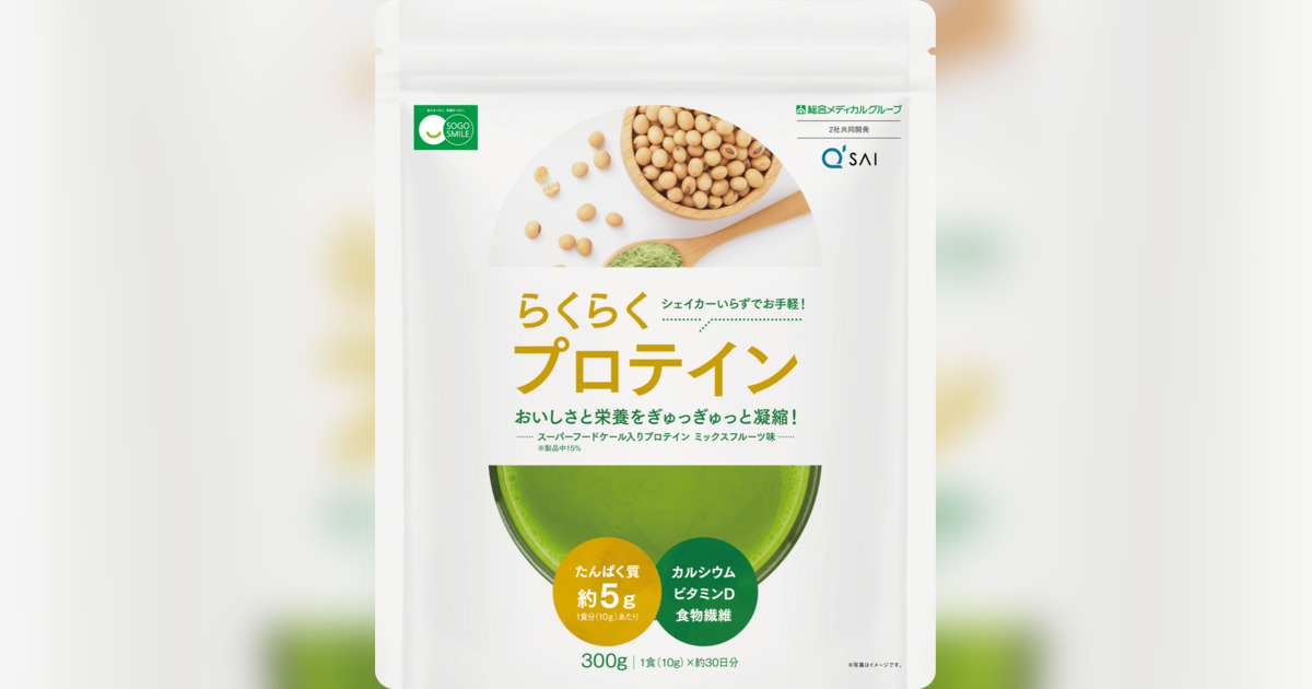 キューサイ株式会社(本社:福岡市中央区、代表取締役社長:石川 順朗)は、総合メディカル株式会社(本社:東京都千代田区/福岡県福岡市、代表取締役社長:多田 荘一郎)とコラボし、ケール入りプロテイン商品「らくらくプロテイン」を共同開発したことをお知らせします。2025年7月7日(月)より、総合メディカルが運営するオンラインショップ「そうごう薬局e-shop」および全国のそうごう薬局グループの調剤薬局で販売開始予定です。