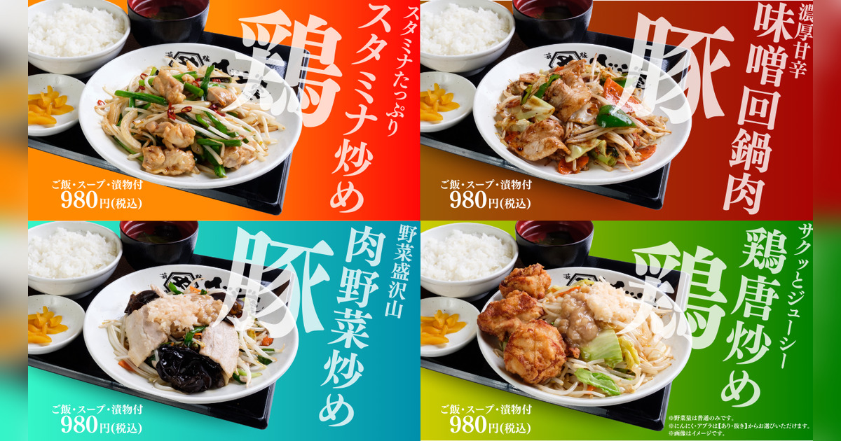 株式会社sommet farm(本社:栃木県宇都宮市本町13-18マロニエ宇都宮403、代表取締役:⼤塚 ⿓之介)は、野菜炒め専門店ベジ家全店にて、サービス定食(スタミナ炒め、味噌回鍋肉、肉野菜炒め、鶏唐炒め)を販売いたいします!