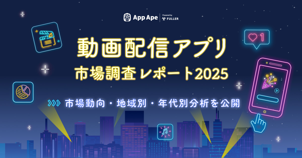 フラー株式会社(本社:新潟県新潟市、代表取締役社長:山﨑将司、以下「フラー」)は、アプリ市場分析サービス「App Ape(アップ・エイプ)」で蓄積するデータをもとに、動画配信アプリの動向や特徴をまとめた「動画配信アプリ市場調査レポート2025」を公開しました。