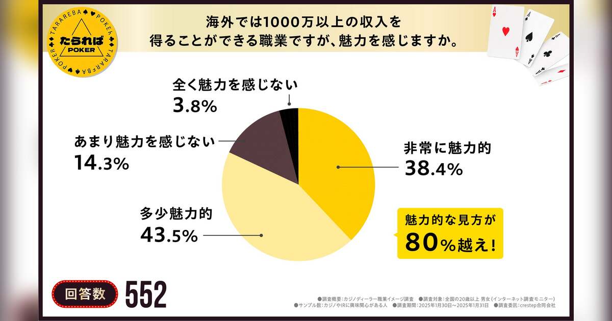 「海外では1000万以上の収入を得ることができる職業ですが、魅力を感じますか」というアンケートを実施したところ、魅力的だとする回答は全体の80%以上に。非常に魅力的(38.4%)、多少魅力的(43.5%)