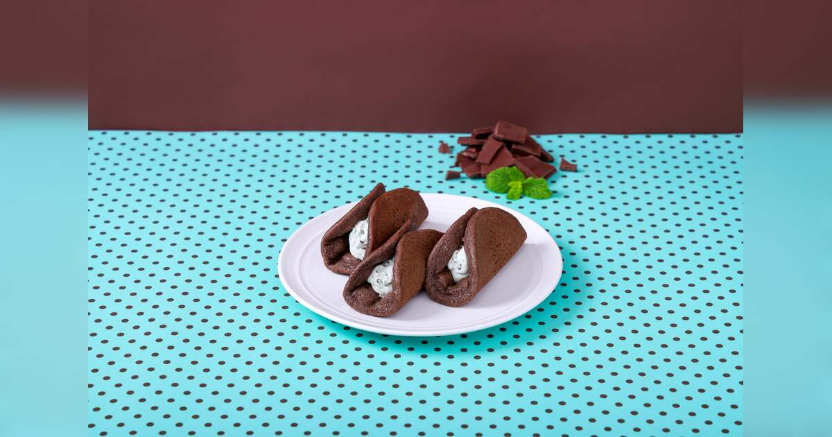 清涼感のあるミントの味わいがしっかりと感じられるふわふわのホイップクリームに、パリッとした食感が楽しめるチョコチップを配合しました。生地はしっとりとして、スイーツ感もたっぷり。ホイップクリームをふわっとはさむオムレット形状のため、一口ほおばるとホイップクリームが口の中で広がり、チョコミントフレーバーをしっかりと楽しめます。