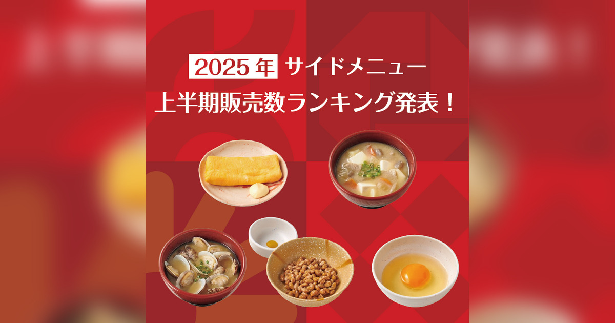 サイドメニューランキングの1位は『玉子焼き』、2位『豚汁』、3位『貝汁』、4位『納豆』、5位『生たまご』でした。昨年の年間販売ランキングと同じランキングの結果になり、5位までの商品は通年ファンが多いようです。