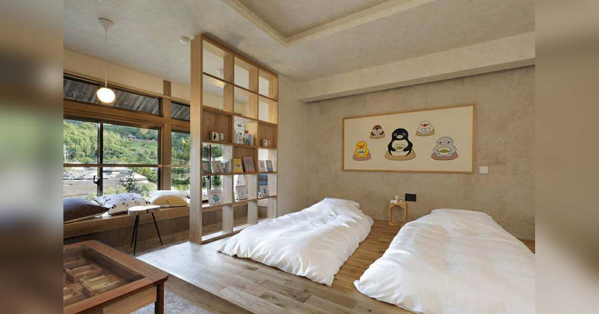 「ペンギンルーム 嬉野」は、大正ロマン漂う温泉郷フロアに誕生した、作品とともに“泊まれる”アート空間です。客室内には、さかざきさんの代表作『ペンギンアパートメント』をはじめとする原画や描き下ろし作品、和紙アート、絶版本を含む私設ライブラリーなどを設置。なかでも、名尾手すき和紙に描かれた全長2メートルの壁画アートは、さかざきさんにとって初の挑戦となる意欲作です。