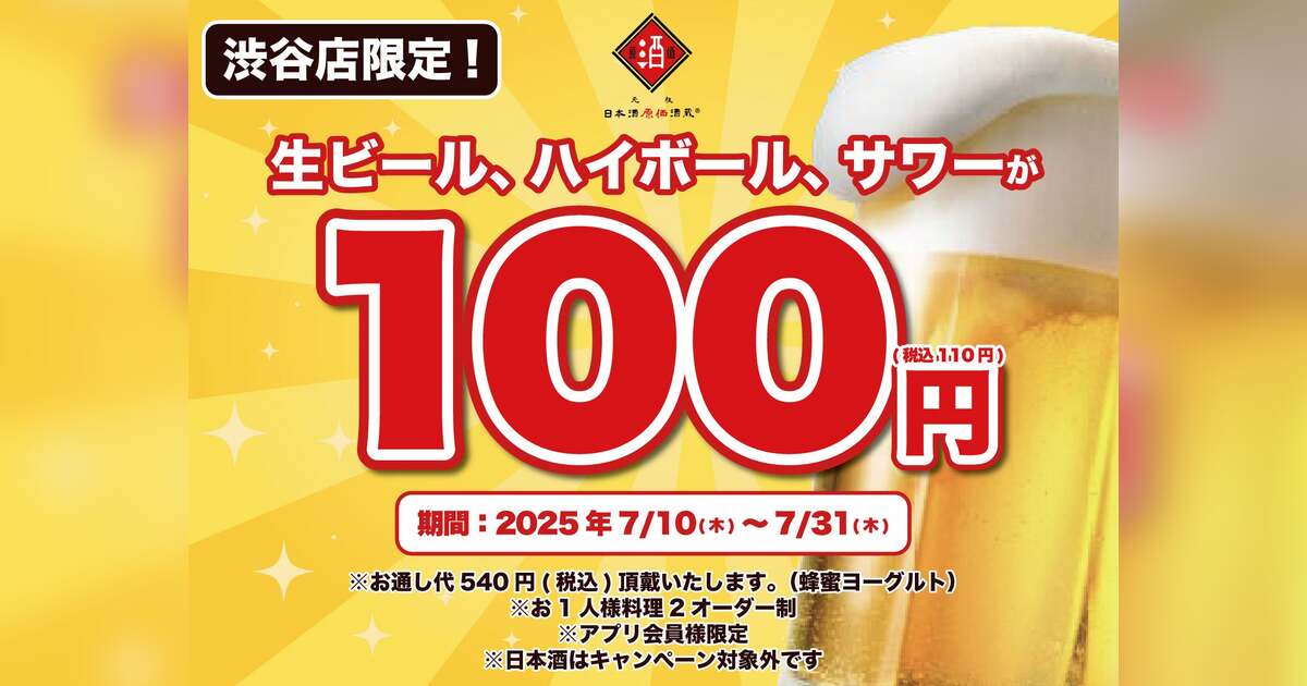 【渋谷本店限定】7/10(木)〜7/31(木)限定で生ビール・ハイボール・サワーを全品110円(税込)でご提供!