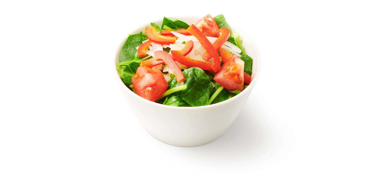 今回のリニューアルでは、赤パプリカやサラダほうれん草を新たに採用し、彩り鮮やかなサラダに仕上げました。太陽光型植物工場で生産されており、サラダで食べられる、サラダほうれん草は、アクや苦みが少なく、サラダでも食べやすいのが特徴です。なお、今回のリニューアルに合わせて、テイクアウト時の容器を再生PET製から紙製に変更します。これにより、1年間で約57トンのプラスチックを削減することができます。