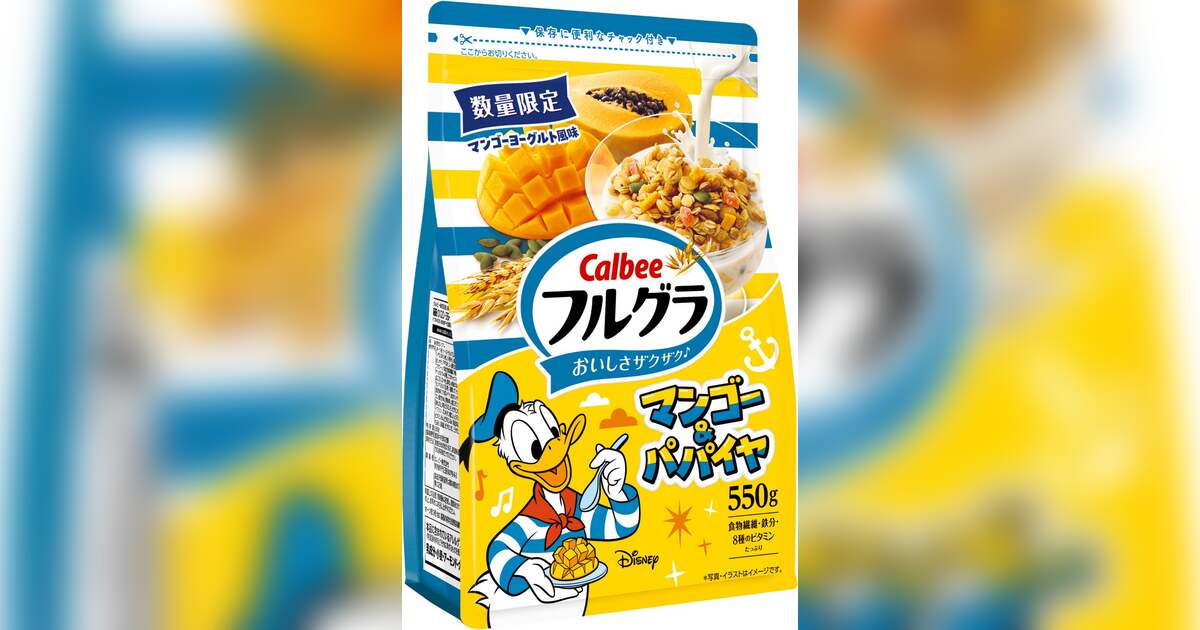 ディズニーデザイン第2弾はドナルドダック!爽やかな色合いのパッケージと味わいで夏にぴったり『フルグラ® マンゴー&パパイヤ』