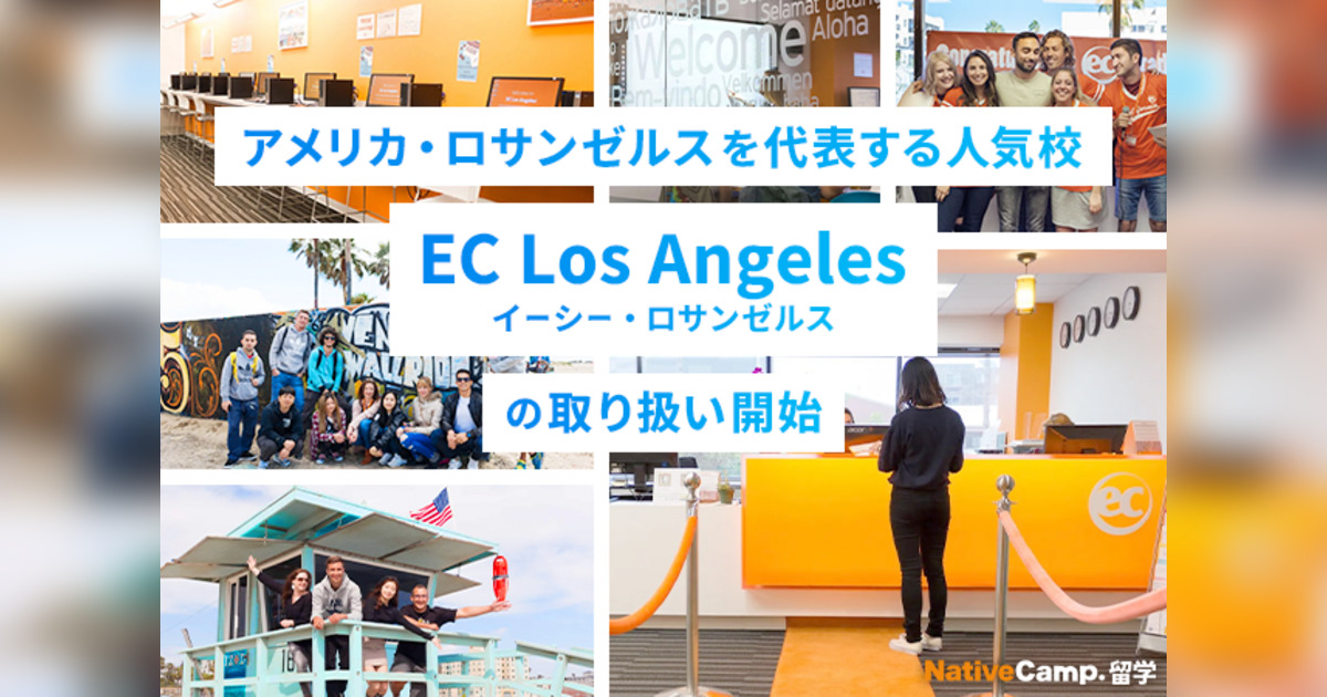 ネイティブスピーカーと回数無制限のオンライン英会話サービス「ネイティブキャンプ英会話」を展開する株式会社ネイティブキャンプ(東京都渋谷区 代表取締役: 谷川国洋)は海外留学エージェントサービス「ネイティブキャンプ留学」において、アメリカ・ロサンゼルスを代表する人気校「EC Los Angeles」の取り扱いを開始したことをお知らせいたします。