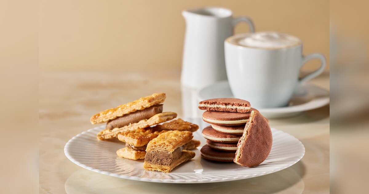 ショコラを生地に練り込み、隠し味にコーヒーを加えたクッキーで、ホワイトミルクのチョコレートをサンドしました。ショコララテのようなチョコレートの濃厚な甘さとミルクのクリーミーな味わいが広がるクッキーです。