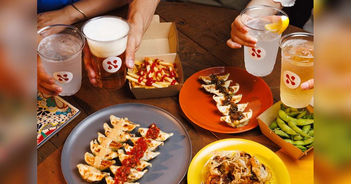 ハイテーブルでの立ち飲みスタイルの「テラス立ち飲みプラン(90分)」は税込4,180円で、ドリンク飲み放題&野菜餃子などの屋台フード付。さらに、当日予約なしで購入ができる**1時間フリードリンクチケットが2,860円(税込)**とリーズナブルな価格設定。野菜餃子や枝豆、たこ焼きなど人気の屋台フードも単品オーダーOK! 同僚や友人との乾杯も、ひとりでの一杯も、気分に合わせて、座ってゆっくり or 立ち飲みでサクッとなど、自由に楽しめます。
