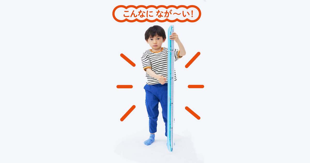 この絵本の最大の特徴は“のび〜る”形状。5.5×20.4cmの細長いハンディサイズながら、ジャバラ式のページを広げると、なんと全長102cm! 子どもが手に取りやすく、並べて遊ぶこともできます。