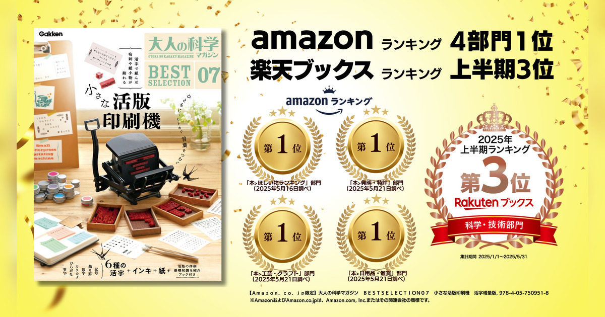 株式会社 学研ホールディングス(東京・品川/代表取締役社長:宮原博昭)のグループ会社、株式会社 Gakken(東京・品川/代表取締役社長:南條達也)は、『大人の科学マガジン BESTSELECTION07 小さな活版印刷機』を2025年7月10日(木)に発売いたしました。