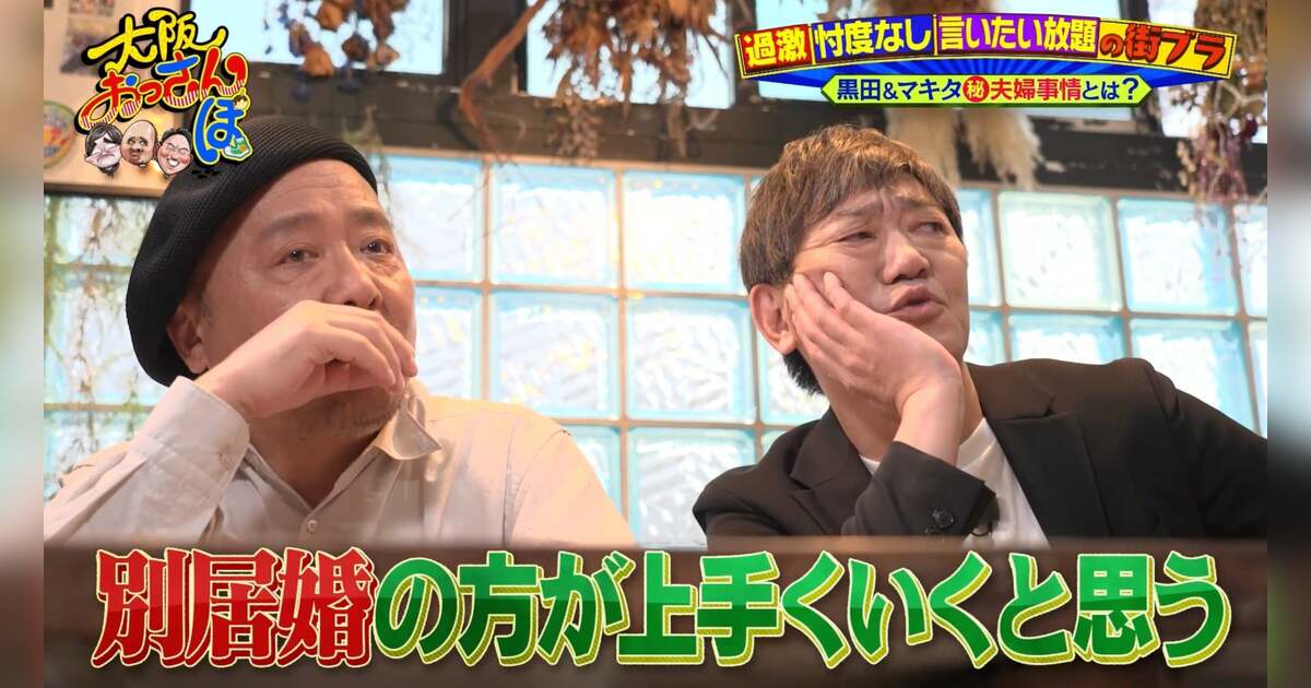 「別居婚のほうがうまくいくと思う」と黒田。マキタも「うちは二拠点生活だから別居婚的な状態」と共感する。話は転がり夫婦喧嘩について語り合うおっさんたち。マキタの困りごとは、奥様が芸人マキタを「大好き」すぎることだそうで……?