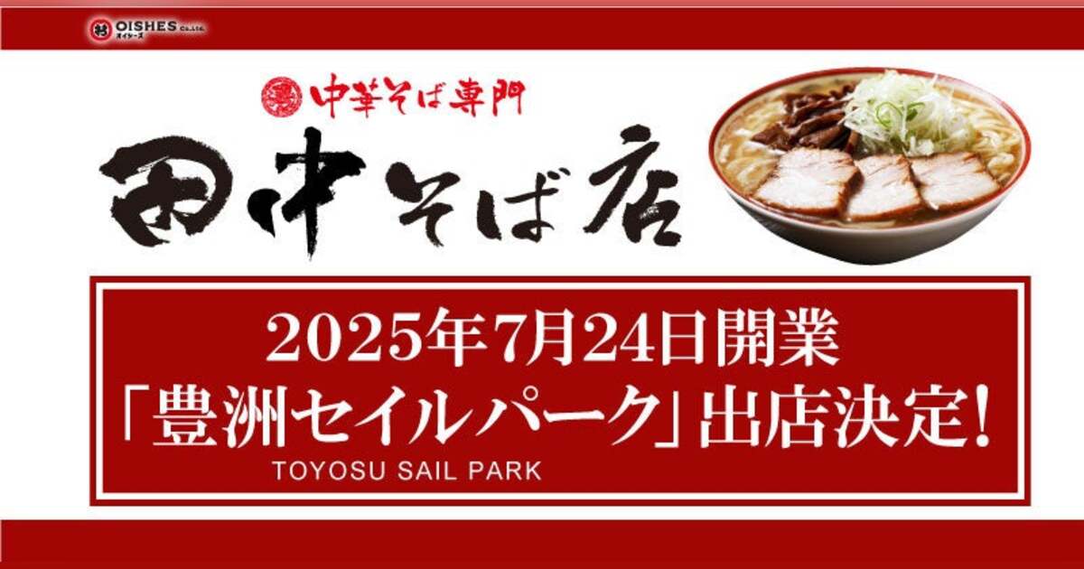 人気飲食店である、つけ麺「つじ田」や江戸前天丼「日本橋 天丼 金子半之助」などをグループで運営するオイシーズ株式会社(所在地:東京都 千代田区 、代表取締役:工藤 智)傘下の株式会社 GMSは、「中華そば専門 田中そば店 豊洲セイルパーク店」を、2025年7月24日(木)に東京都江東区にて開業する豊洲セイルパーク内に出店いたします。