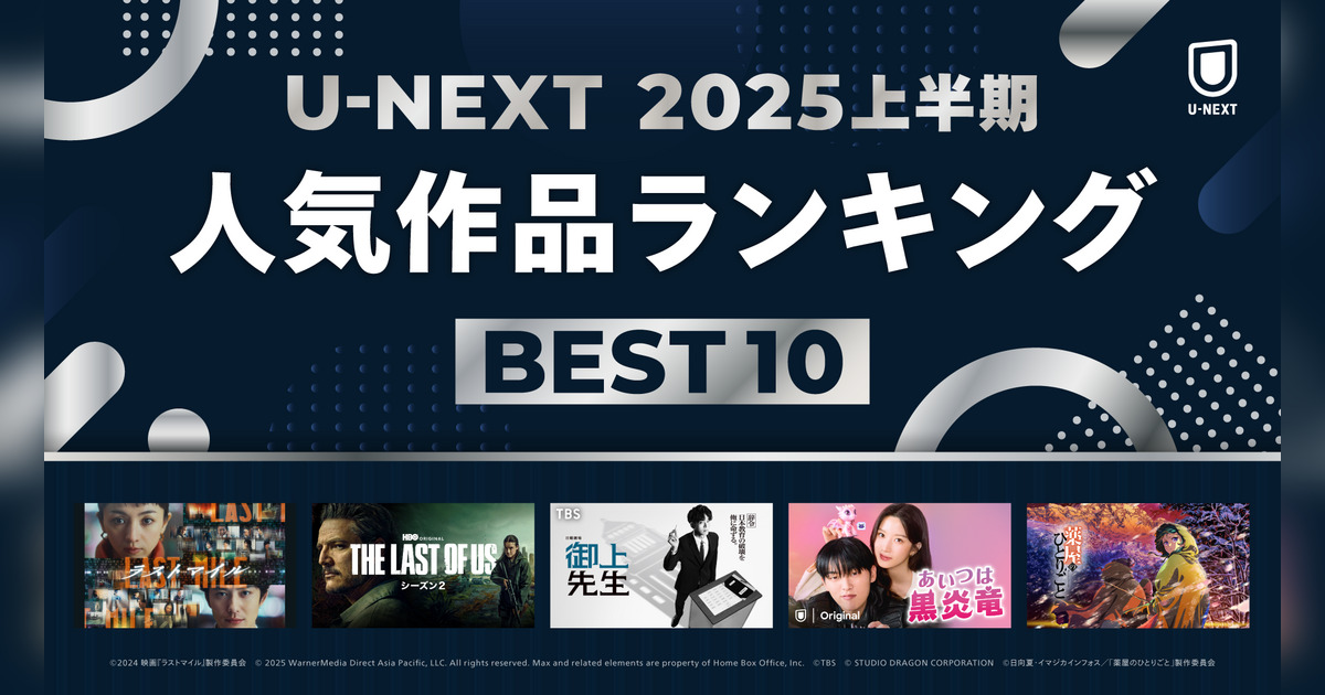 USEN&U-NEXT GROUPの株式会社U-NEXT(本社:東京都品川区、代表取締役社長:堤 天心)が運営する動画配信サービス「U-NEXT」は、2025年7月11日(金)、「U-NEXT 2025年上半期ランキング」を発表いたしました。