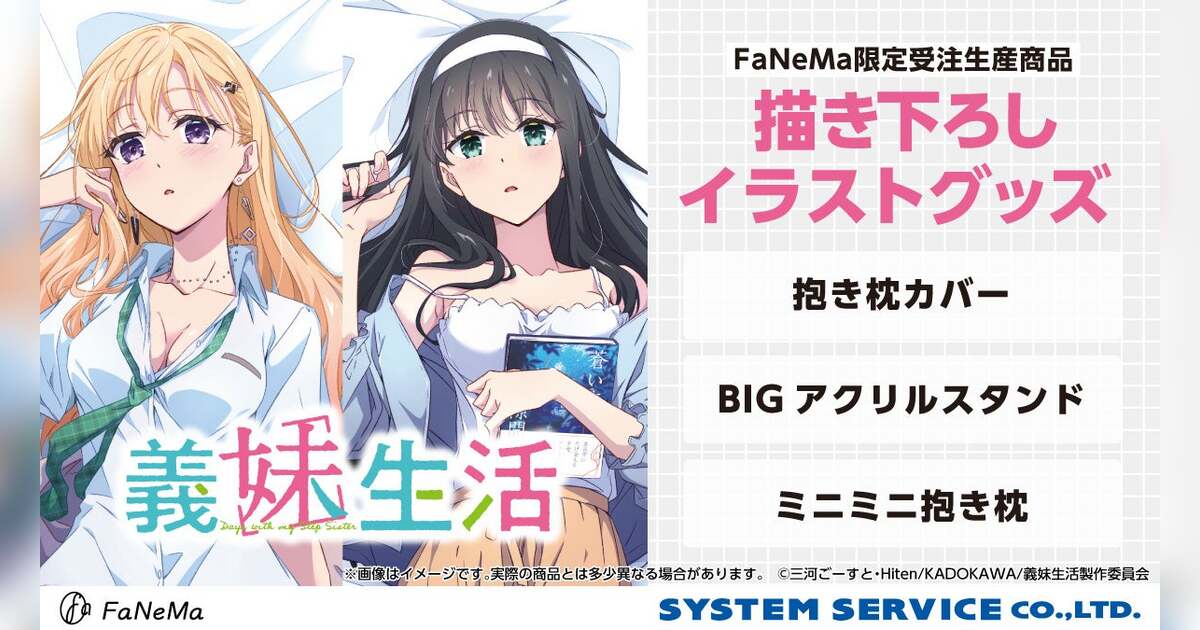 システムサービス株式会社(本社:東京都豊島区、代表取締役社長:田村宗弘)は、アニメ・マンガ・ゲーム作品等のキャラクター商品の企画・製作・販売をする自社ECサイト「FaNeMa」(URL:https://fanema.jp/)にて、『義妹生活』より「抱き枕カバー」「ミニミニ抱き枕」「BIGアクリルスタンド」を発売いたします。