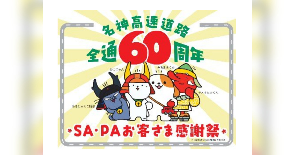 E1 名神高速道路(名神)全線開通60周年を記念し、これまでのご愛顧に感謝を込めて、名神のサービスエリア(SA)・パーキングエリア(PA)にてお客さま感謝祭を開催します。