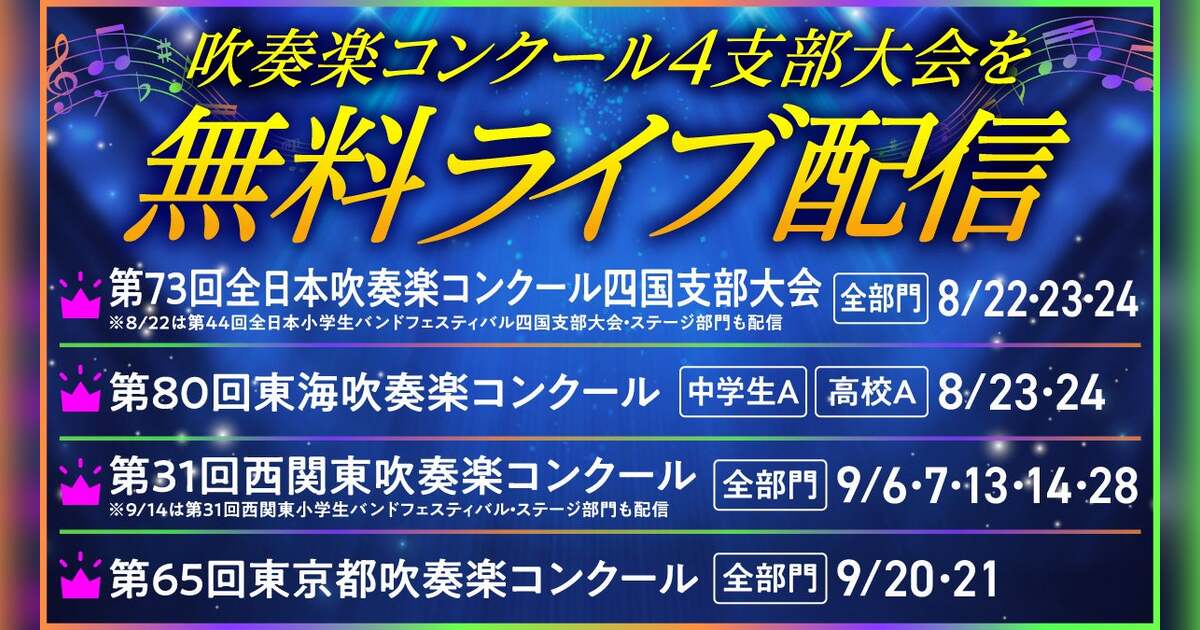 株式会社朝日新聞社(代表取締役社長CEO:角田克)は、今年も吹奏楽コンクールの無料ライブ配信を実施します。昨年も配信した西関東、東京都、東海の吹奏楽コンクールに、今年は四国支部大会も加わり、過去最多4大会の模様を吹奏楽ライブ配信情報サイト「吹奏楽プラス」で無料配信します。