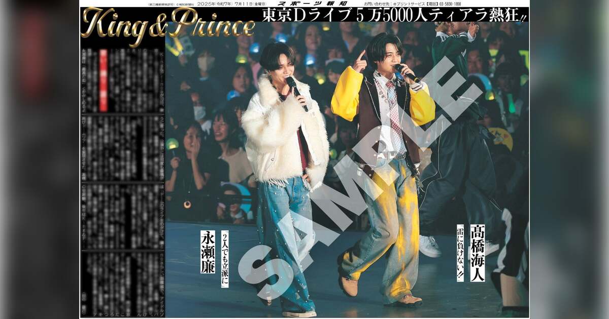 スポーツ報知を発行する報知新聞社(代表取締役社長・長谷川剛)は新聞の一部紙面をコンビニエンスストアのマルチコピー機からプリントできる「スポーツ報知コンビニプリント」サービスを展開中。スポーツ紙ならではの大きな写真を使った紙面をプリント版として販売しています。King&Princeの 「King&Prince LIVE TOUR 24-25 Re:ERA in DOME」東京ドーム公演初日の様子を掲載した7月11日付紙面の販売を開始しました。永瀬廉と髙橋海人2ショットの紙面やソロバージョンを含む7種類を発売中です。
