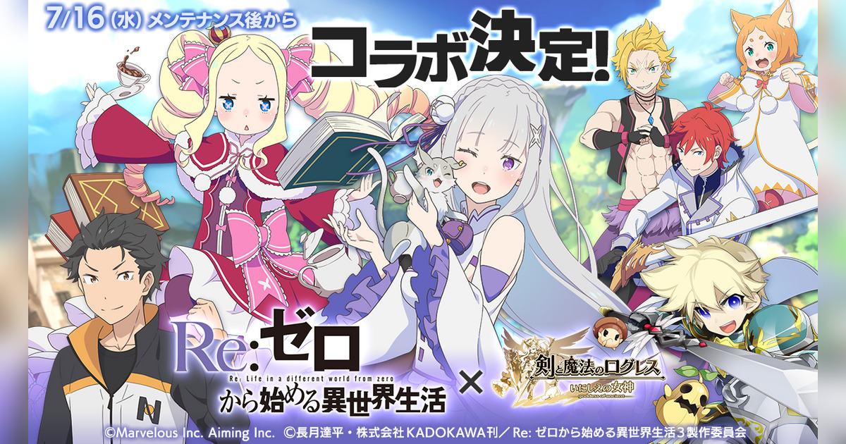 株式会社マーベラス(代表取締役社長:照井 慎一/所在地:東京都品川区)は、スマートフォン向け本格オンラインRPG『剣と魔法のログレス いにしえの女神』において、2025/7/16(水)からTVアニメ「Re:ゼロから始める異世界生活」×「ログレス」新コラボを開催することをお知らせいたします。