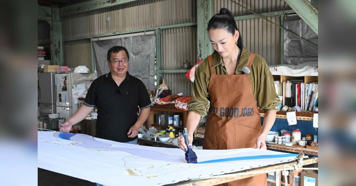 そして今回、塗りの作業を冨永愛も手伝うことに。波の上にクジラが描かれたフラフの波の色を塗らせていただくことに。初体験で肩に力が入り過ぎてると吉川さんに突っ込まれながら、色を塗っていく。さらにクジラにも色を塗るが、はたしてうまく塗ることは出来たのか?