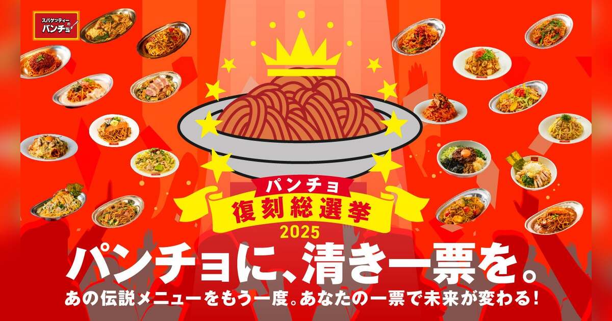 “改めてナポリタンはうまいと言わせたい”を理念に掲げる「スパゲッティーのパンチョ」は、これまでに販売した期間限定メニューの人気投票イベント「パンチョ復刻総選挙2025」を2025年7月14日(月)から7月27日(日)まで開催します。