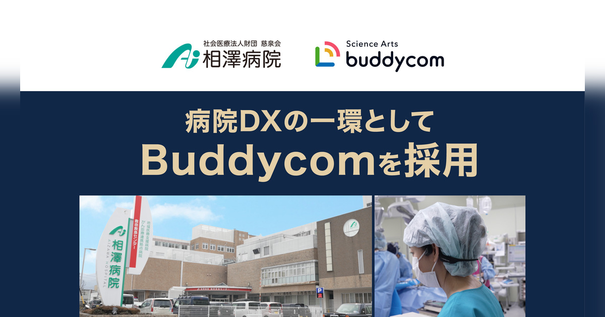 フロントラインワーカーをつなげるライブコミュニケーションプラットフォーム「Buddycom(バディコム)」を提供する、株式会社サイエンスアーツ(所在地:東京都渋谷区、代表取締役社長:平岡 秀一、以下「サイエンスアーツ」)は、急性期医療を担う地域の中核病院である社会医療法人財団慈泉会 相澤病院(所在地:長野県松本市、病院長:相澤克之氏、以下「相澤病院」)が推進する病院DXの一環として、Buddycomが手術室のオペレーション改善に採用されたことをお知らせします。また本日、導入事例を公開いたしました。本案件は、NTTドコモビジネス株式会社(旧 NTTコミュニケーションズ株式会社)の委託をうけたNTTドコモビジネスソリューションズ株式会社により導入いただいております。