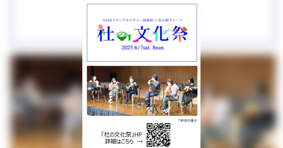 2025年6月7日(土)、8日(日)の2日間、「OHKリビングカルチャー倶楽部 岡山」(主催:岡山放送株式会社 岡山県岡山市北区下石井2-10-12)による「杜の文化祭」が、『杜の街グレース』(岡山県岡山市北区下石井|運営管理:両備ホールディングス株式会社)にて開催されます。
