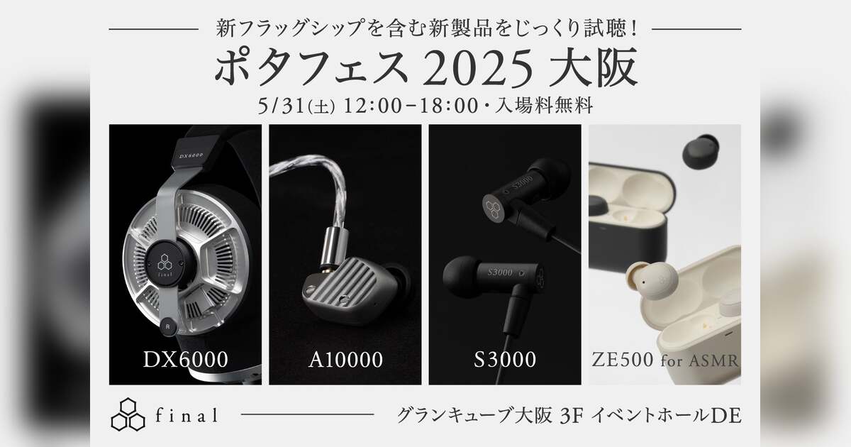 国内オーディオメーカー株式会社final(代表:細尾 満、本社:神奈川県川崎市)は、2025年5月31日(土)に大阪・グランキューブ大阪 3F イベントホールDEで開催されるオーディオイベント「ポタフェス2025 大阪」(主催:e☆イヤホン)に出展いたします。