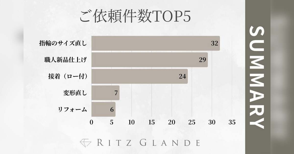 北海道札幌市のジュエリー修理・リフォーム専門店のRITZ GLANDEは、2025年6月にご依頼いただいた内容を集計いたしましたので上位5位までをランキング別にご紹介します。