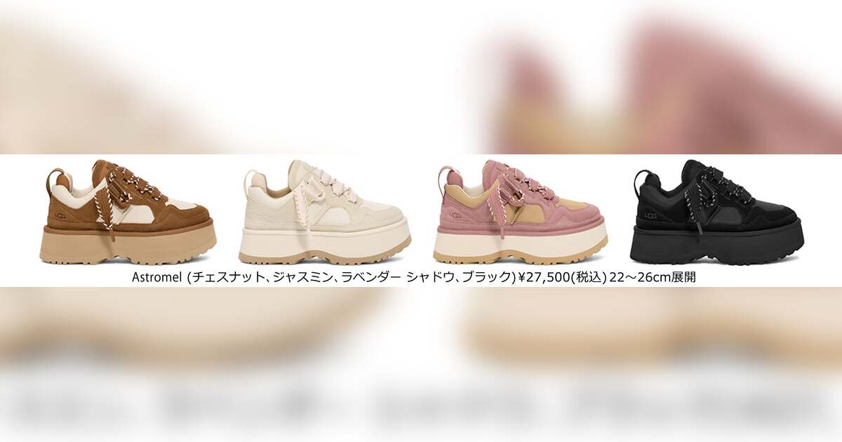 Tokyo (2025年7月15日) –南カリフォルニアを拠点とするグローバルライフスタイルブランドのUGG (a division of Deckers Brands [NYSE: DECK])は、人気のLowmelスニーカーをプラットフォームスタイルにアップデートした新作Astromel(アストロメル)のローンチを発表します。スエード、ナイロン、再生テキスタイルのアッパーを採用し、ツインシームのディテールや約5cmの厚底プラットフォーム、クッション性に優れたEVAのフットベッドがUGGのルック&フィールを表現し、クラシックスニーカーの要素をアレンジし進化させた全く新しいデザインでありながらも、UGGらしいスタイルに仕上げています。ファッションシーンにも映えるサテンレースと、しっかりしたフィット感で履けるフラットレースの2種のシューレース付きで、その日の気分やコーデにあわせて異なるスタイルを楽しめます。