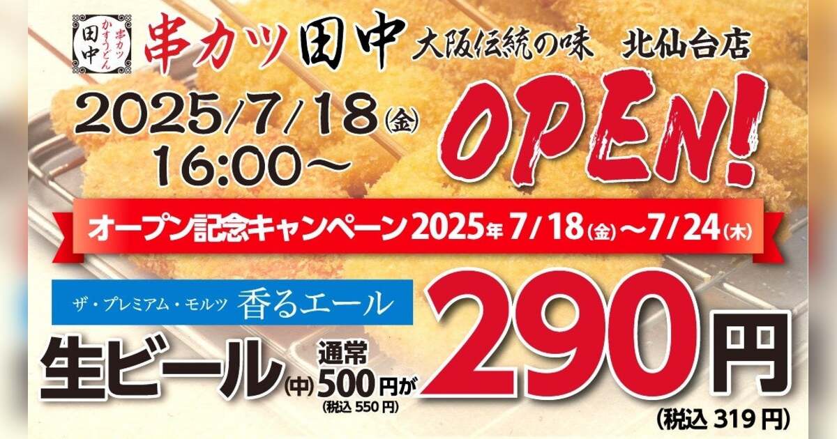 株式会社串カツ田中ホールディングス(本社:東京都品川区東五反田、代表取締役社長:坂本 壽男)は、2025年6月16日(月)に、宮城県7店舗目となる「串カツ田中 北仙台店」をオープンいたします。