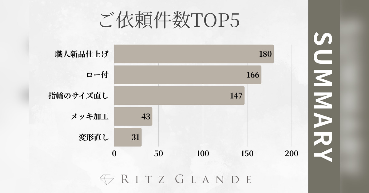 北海道・札幌のジュエリー修理/リフォーム専門店『RITZ GLANDE-リッツグランデ-』では、2025年上半期(1月~6月)にご依頼いただいた修理・リフォームサービスの集計結果を発表いたします。