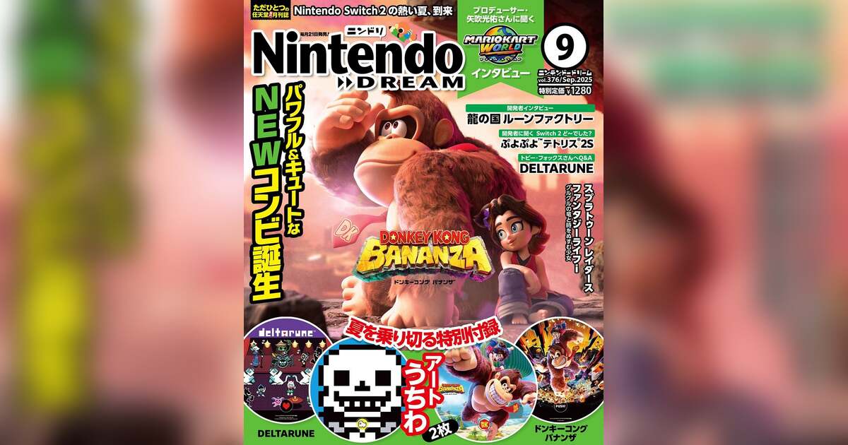 ドンキーコング バナンザが熱い! マリオカート ワールド&龍の国 ルーンファクトリーのインタビュー+ドンキー&DELTARUNEアートうちわ付録がついた任天堂専門誌ニンテンドードリーム9月号発売