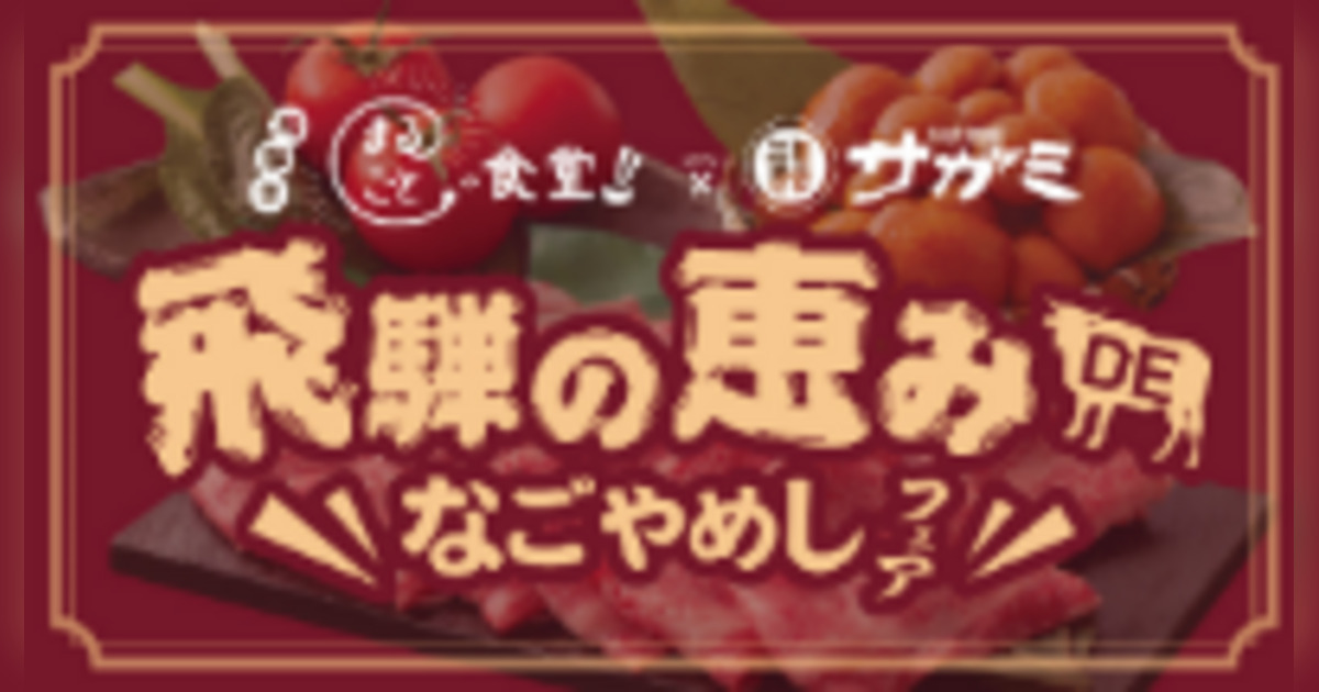 岐阜県飛騨市とサガミレストランツ株式会社は、地域活性化と食による魅力発信を目的に、昨年多くの反響をいただいたコラボ企画「飛騨市まるごと食堂 with 和食麺処サガミ」の第2弾を開催いたします。