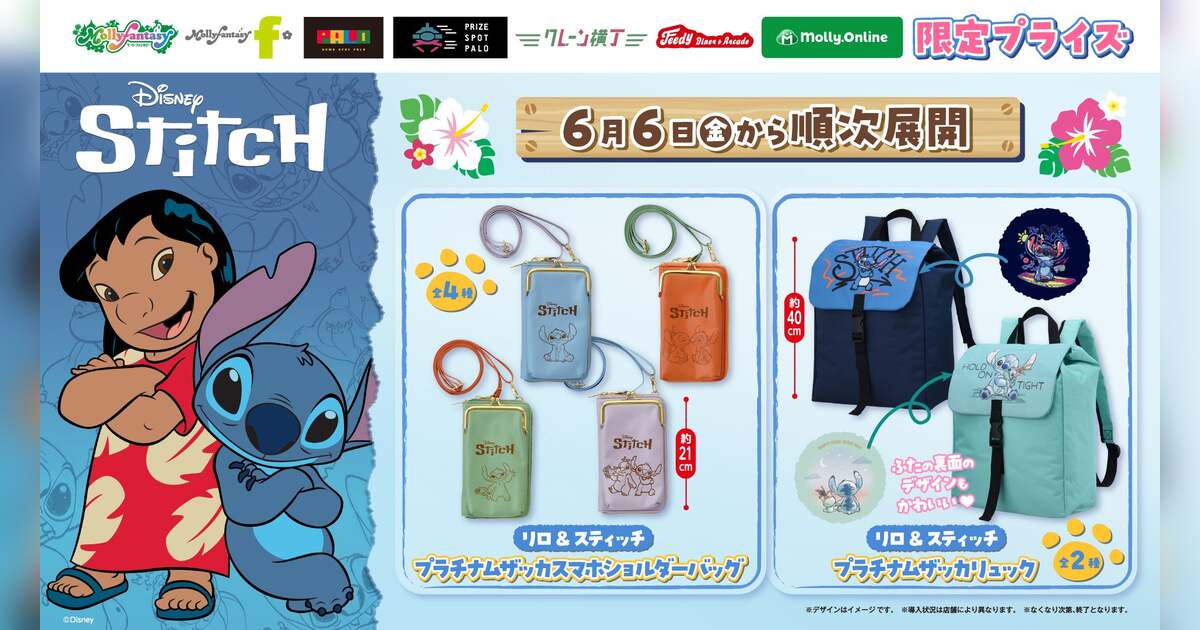 ハワイのカウアイ島を舞台に、 “オハナ<家族>”の大切な絆を描く感動のハートフル・ファンタジー映画『リロ&スティッチ』がプライズに登場。ブルーを基調とした元気いっぱいの「ディズニー スティッチ」がデザインされた「リロ&スティッチ プラチナムザッカリュック」と、「ディズニー スティッチ」となかまたちがデザインされた普段使いに便利な「リロ&スティッチ プラチナムザッカスマホショルダーバッグ」の2アイテム全6種類を展開いたします。