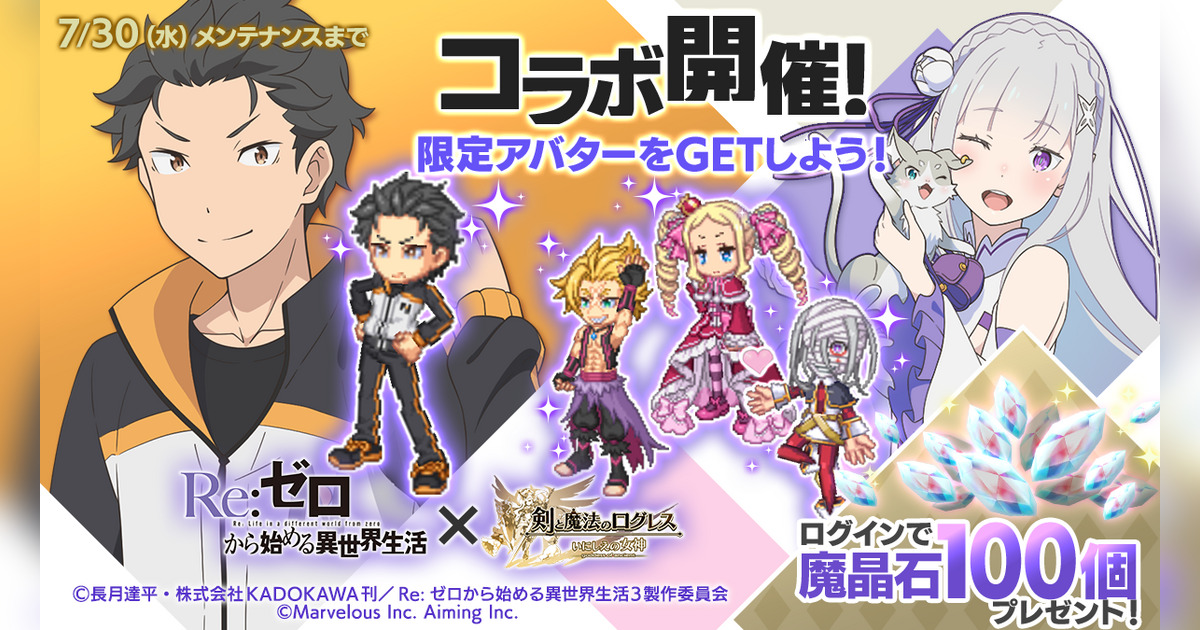 株式会社マーベラス(代表取締役社長:照井 慎一/所在地:東京都品川区)は、スマートフォン向け本格オンラインRPG『剣と魔法のログレス いにしえの女神』において、2025/7/16(水)にTVアニメ「Re:ゼロから始める異世界生活」×「ログレス」コラボの開催などを含むアップデートを行ったことをお知らせいたします。