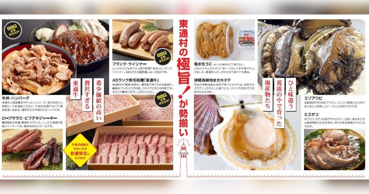 そしてこのたび、同プロジェクトの集大成ともいえるイベントが決定いたしました。舞台は、青森市にあるショッピングセンター「サンロード青森」。7月19日(土)―20日(日)の両日開催です。市場流通量の事情で、普段は東通村にいかないと買えないような東通牛や海産品、加工品が一挙に集まる「東通村物産展」を開催。