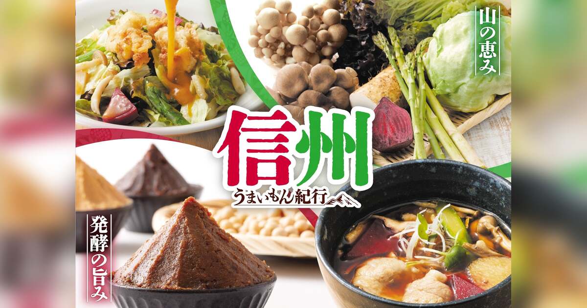 今回のフェアでは、安曇野名産「円揚げ」、すや亀の信州味噌漬け豚ロース、山形村長芋やビーツ入りサラダそば、丸正醸造の塩麹使用の鶏天、松尾商店の野沢菜コロッケ、すずらんハウスのミルクジェラート、家族亭オリジナルそば味噌など信州素材が満載です。