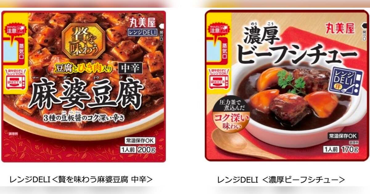 丸美屋食品工業株式会社(本社:東京都杉並区、社長:阿部豊太郎)は、レンジで加熱するだけで手軽に一人前のおかずを楽しめる「レンジDELIシリーズ」から「レンジDELI<贅を味わう麻婆豆腐 中辛>、レンジDELI<濃厚ビーフシチュー>」 を2025年8月21日(木)に新発売いたします。