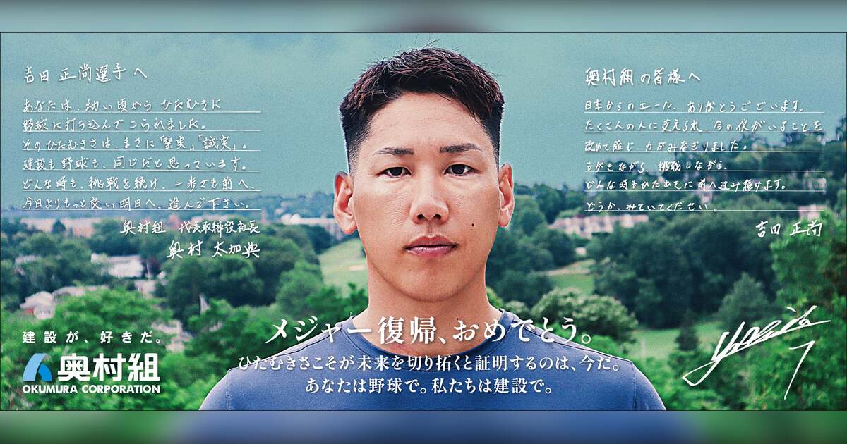 株式会社奥村組(本社:大阪市阿倍野区/代表取締役社長:奥村 太加典)は、2025年7月17日(木)に、メジャーリーガーでボストン・レッドソックス所属の吉田正尚選手との手紙のやり取りを紹介した広告を産経新聞全国版朝刊に掲載しました。