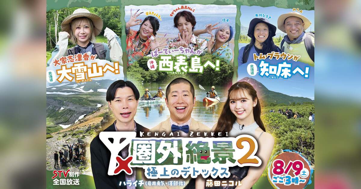 絶景ハンターとしてロケに向かうのは、スマホが手放せない「令和のイマドキトリオ」ぱーてぃーちゃん。14年間トップアイドルとして走り続け、M-1出場、24kg激太り、結婚。夢だった?バラドルとして大忙しな大家志津香。前回放送では悪天候のため絶景を堪能できず、リベンジを目指すトム・ブラウン。そしてスタジオMCには前回と同じくハライチと藤田ニコルが番組を盛り上げます。