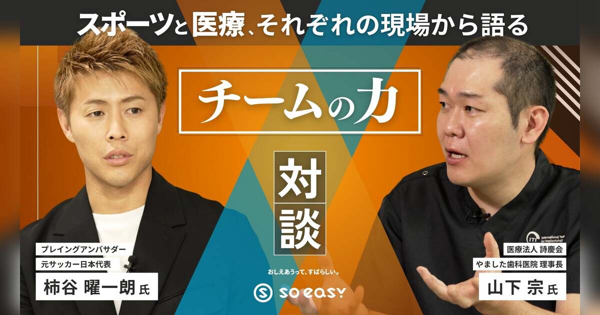 日本のサッカー界の最前線で活躍し、J1クラブチームでキャプテンを務めてきた柿谷氏と、soeasy buddyのユーザーで、やました歯科医院院長の山下先生に、「スポーツと医療、それぞれの現場から語るチームの力」というテーマで、チーム・組織を強くするために必要なことを語っていただきました。