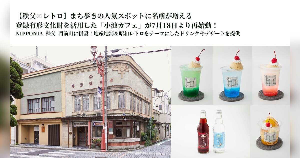 バリューマネジメント株式会社(本社:大阪府大阪市、代表:他力野 淳、以下、当社)は、当社が展開する「VMG HOTELS & UNIQUE VENUES」(以下、当グループ)の分散型ホテル「NIPPONIA 秩父 門前町」(埼玉県秩父市)において、登録有形文化財「小池煙草店」の1階店舗スペースの運営を新たに受託しました。昭和レトロな空間と飲食を提供するカフェとして、「小池カフェ」を2025年7月18日(金)にリニューアルオープンいたします。