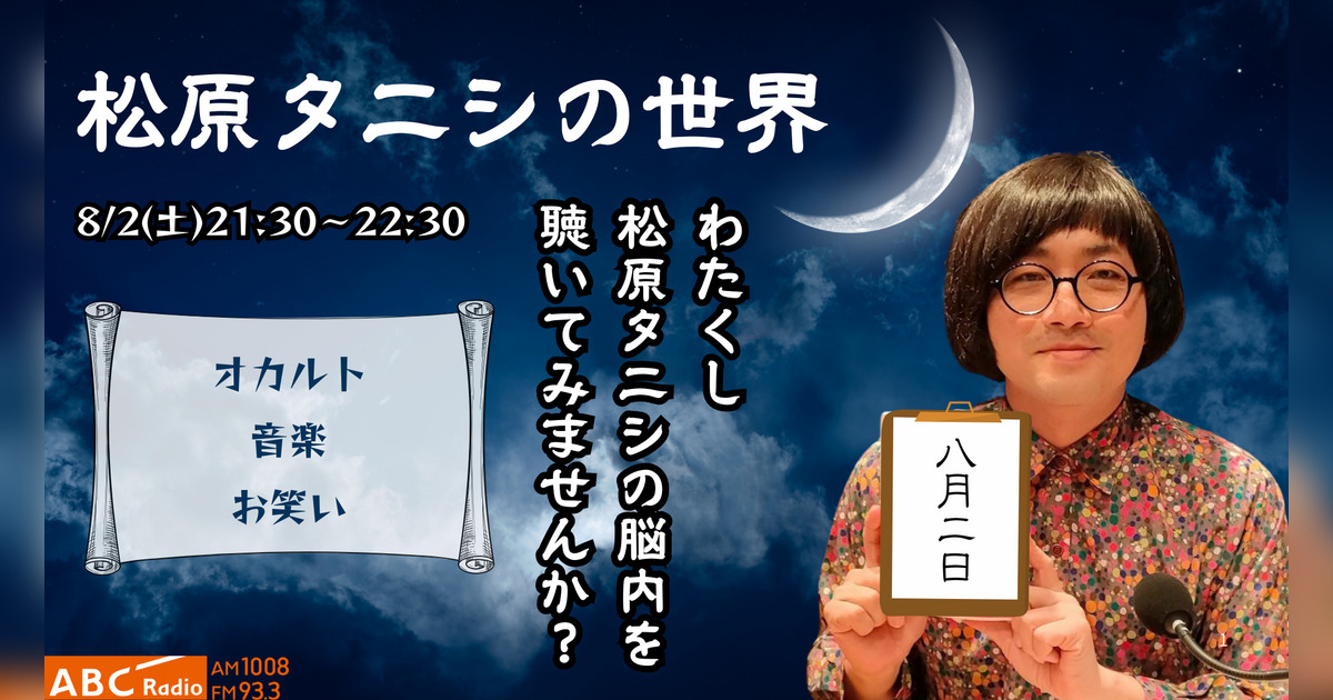 事故物件住みます芸人として一躍有名になった松原タニシ。今回、ABCラジオの特別番組として『松原タニシの世界』を8/2(土)にオンエア。