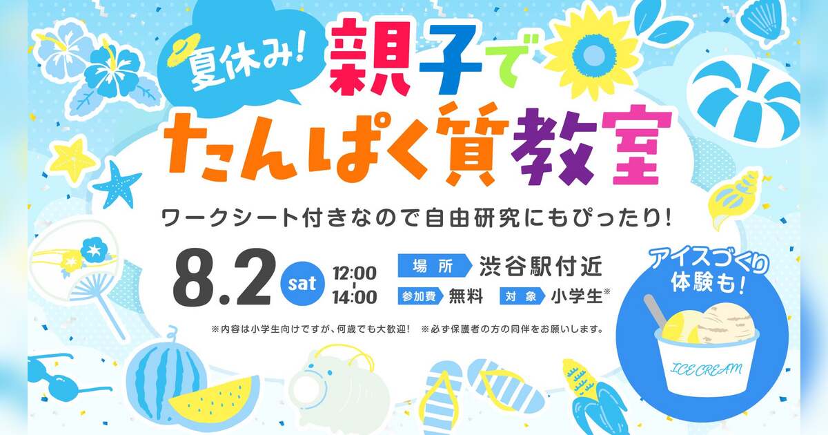 “タンパク質ってなに?”をテーマにした自由研究講座。ワークシートをそのまま学校に提出できる構成で、夏休みの宿題対策にもぴったりです。